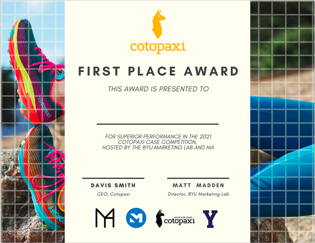 Closer to home, the Marketing Lab partnered with BYU’s Marketing Association to host another case competition—sponsored by the colorful outdoor apparel company, Cotopaxi.