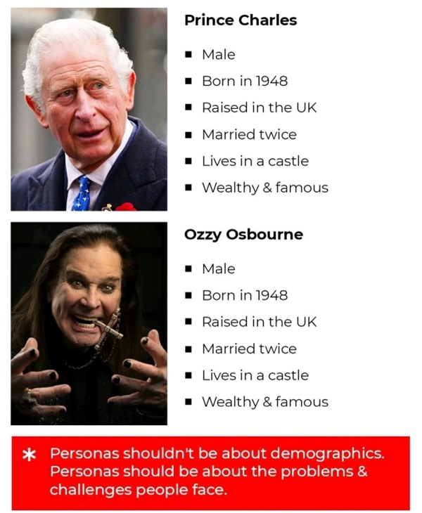 While this is something of a goofy example, it makes a valuable point. Looking only at demographic and geographic information, Prince Charles and Ozzy Osbourne (the “Prince of Darkness”) have a lot in common! They’re both the same age, sex, and race... hailing from the same country and enjoying a lot of wealth and fame.
