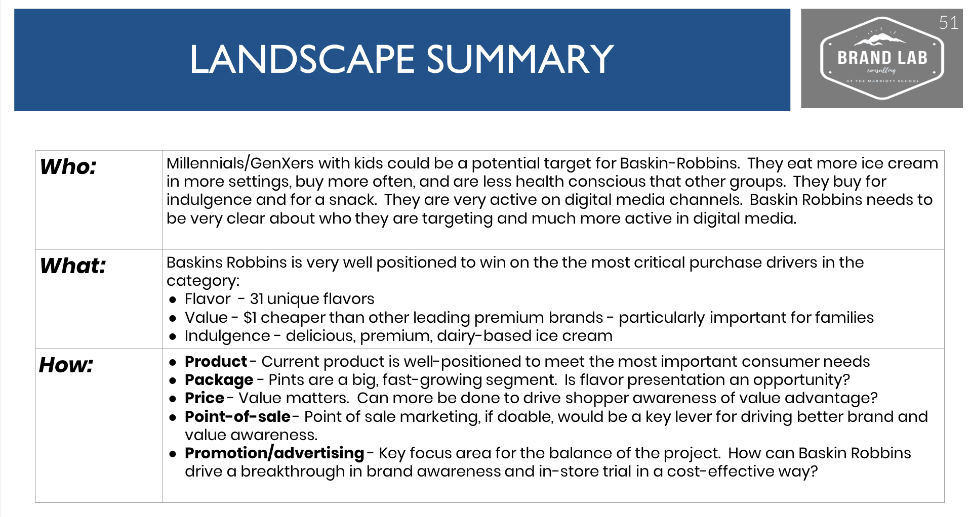 To clarify where Baskin-Robbins could win in the competitive landscape, the BYU Marketing Lab conducted a comprehensive Competitive Landscape Assessment using syndicated data (Mintel, Statista, IBIS World) and category-specific insights. Competitive Landscape Analysis …